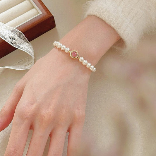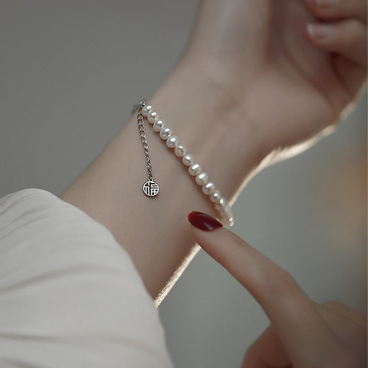 Natural Pearl Ball Double Layer Minimalist Design Silver Bracelet