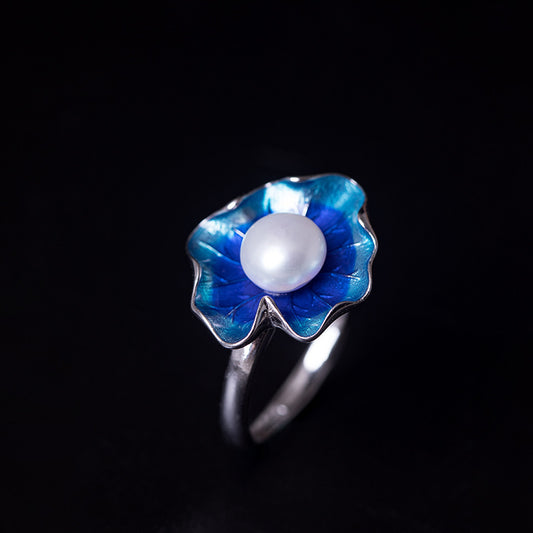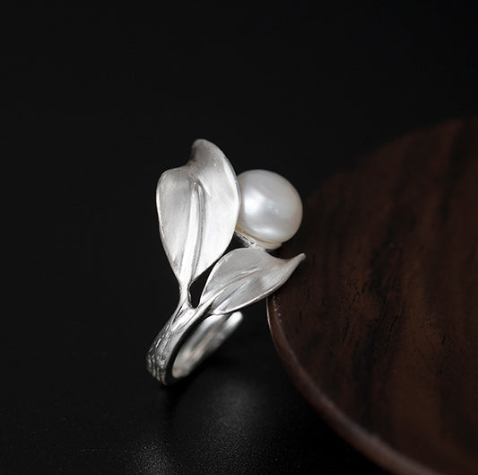 Lotus leaf design pearl ring