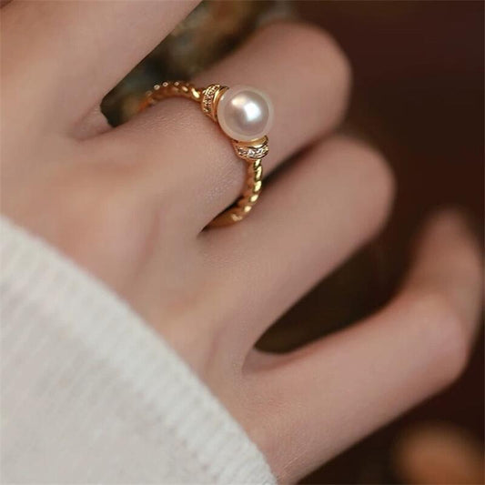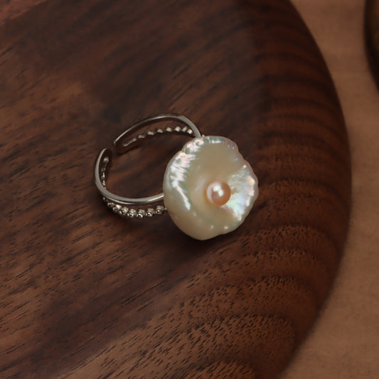 French Lady Irregular Round Pearl Ring