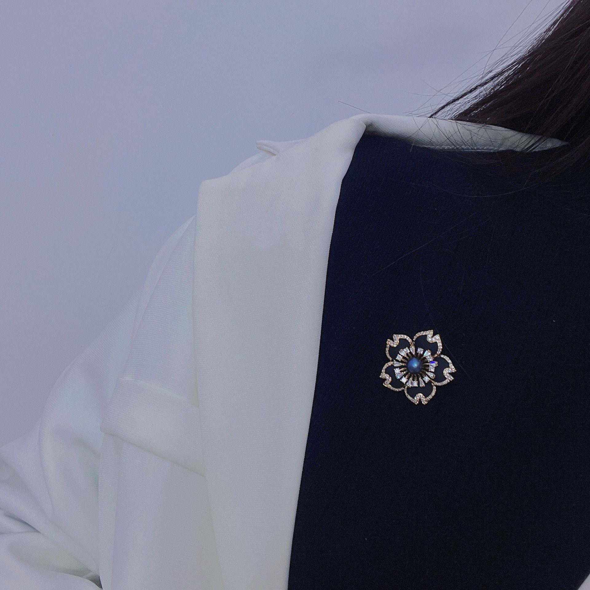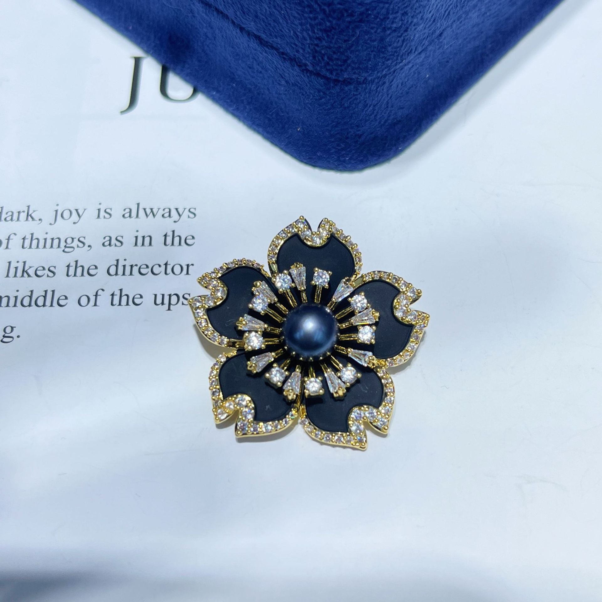 Enamel Black Tea Flower Natural Pearl Brooch