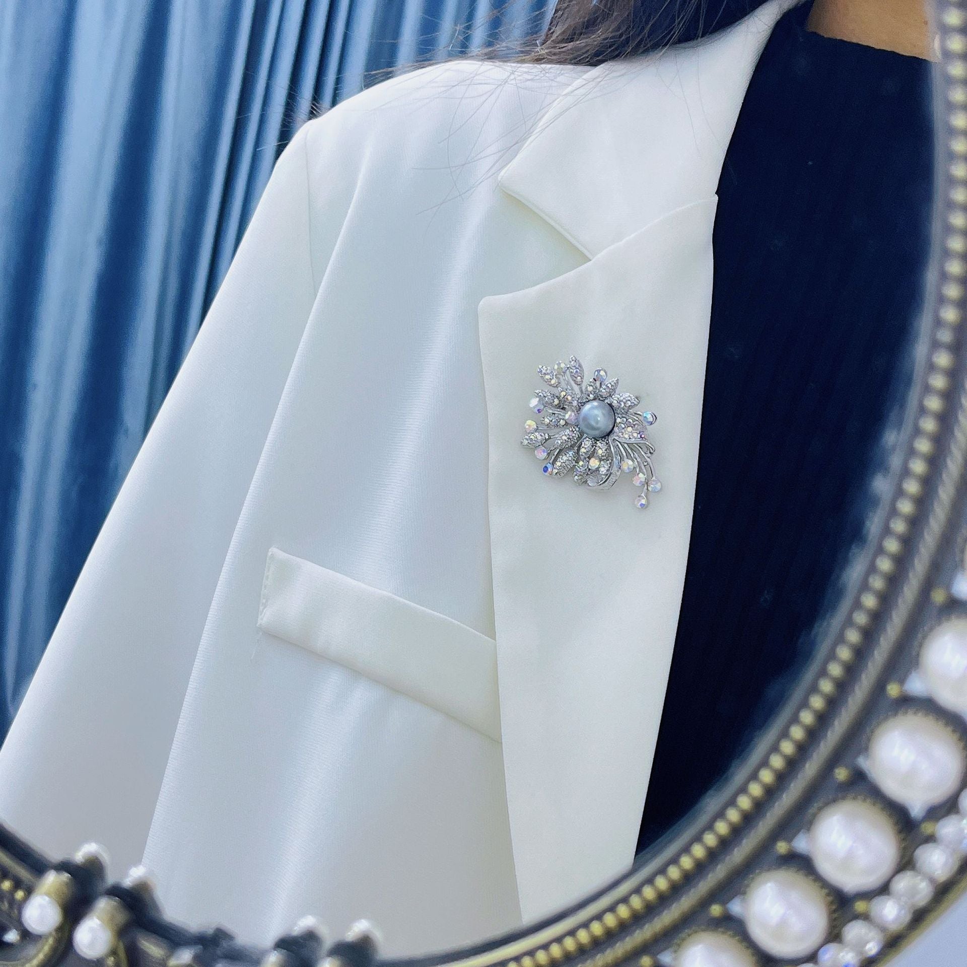 Natural freshwater pearl multicolored iris design brooch
