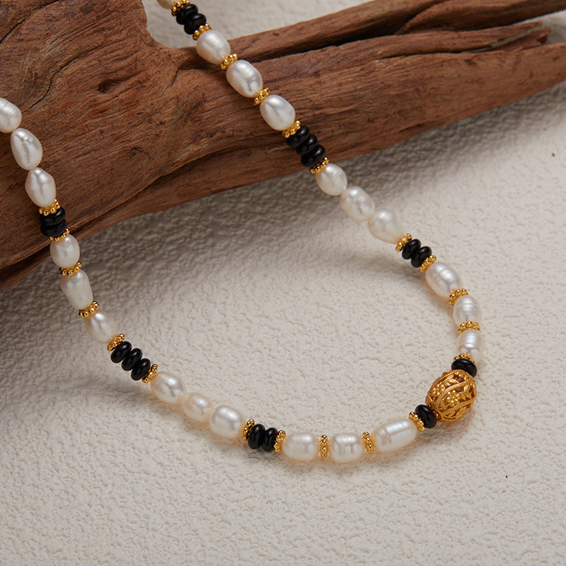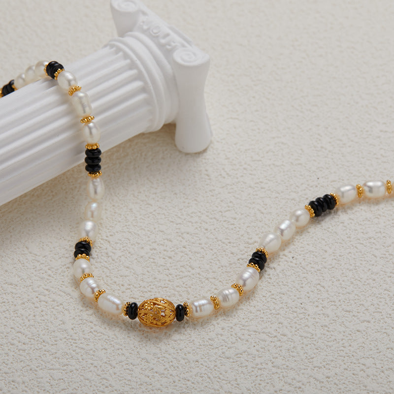 Natural pearl black agate design necklace