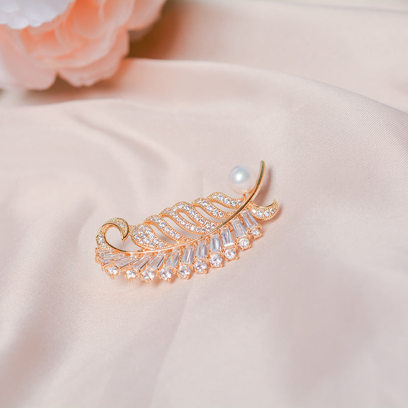 Natural Pearl Feather Design Retro Brooch