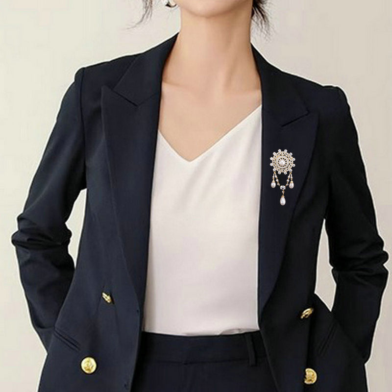 Natural Pearl Tassel Design Brooch