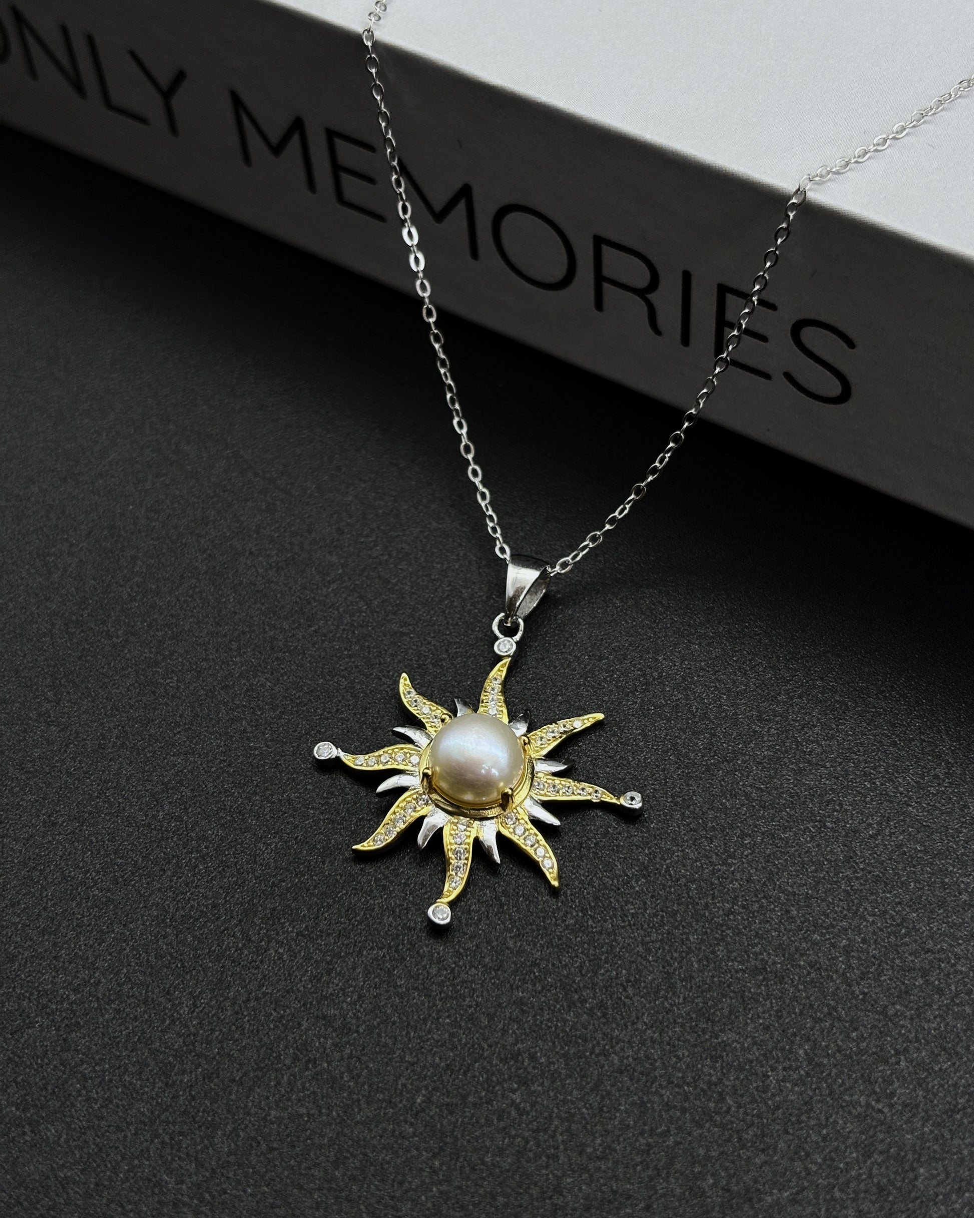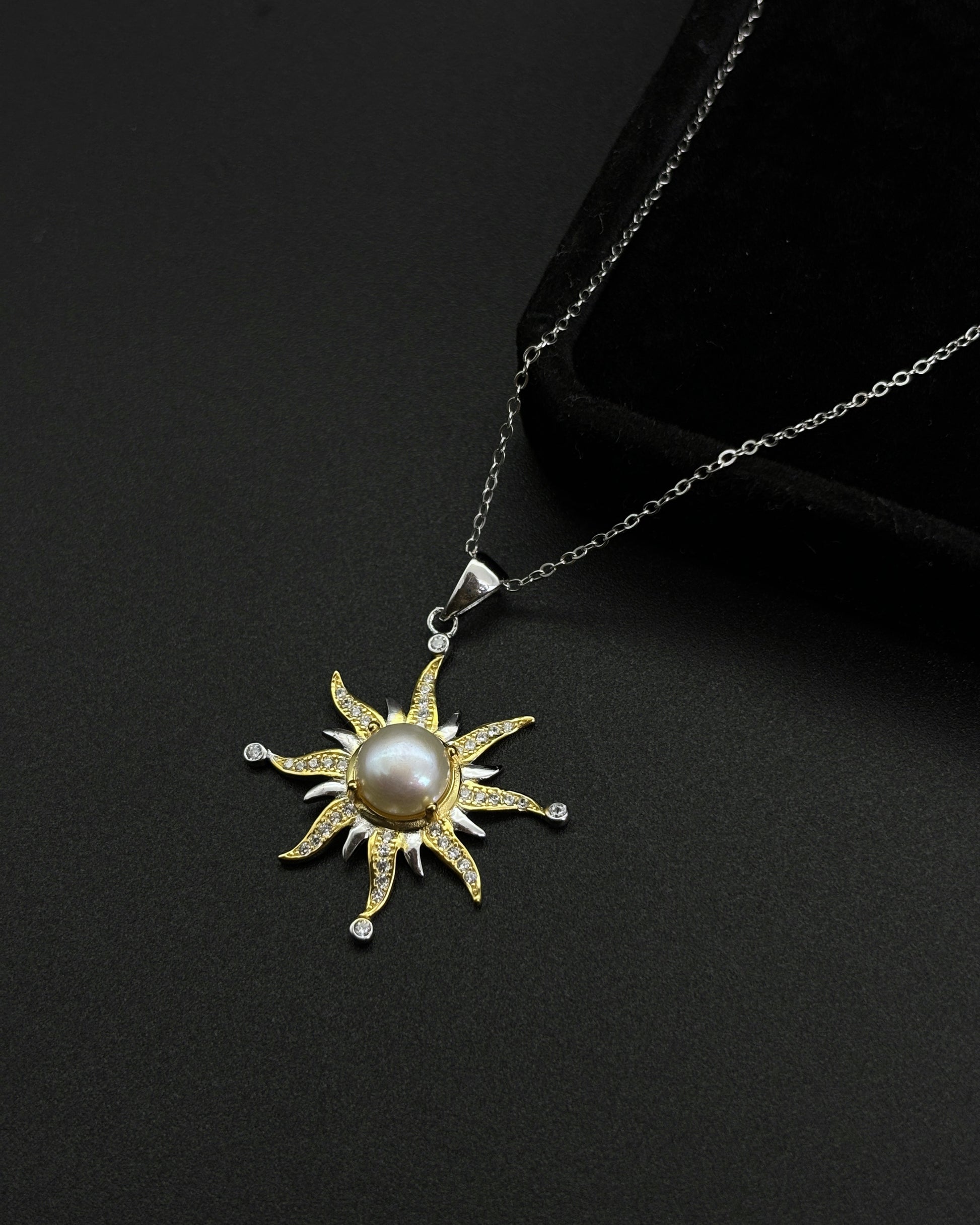 Niche Design S925 Sterling Silver Natural Pearl Color Treasure Sunflower Necklace