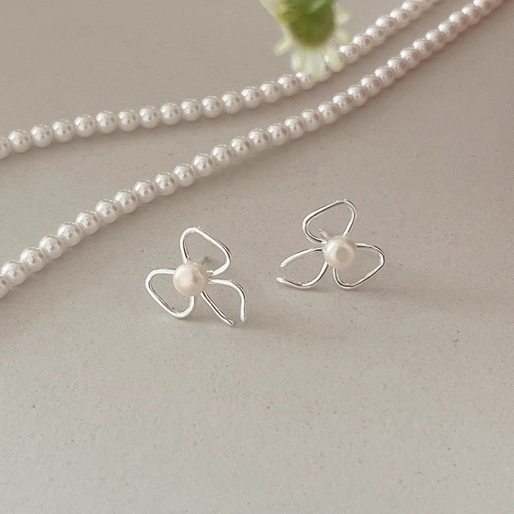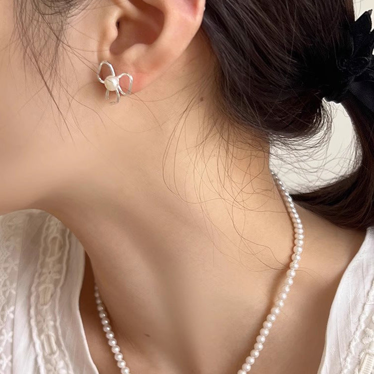 Pearl stud earrings with bow design