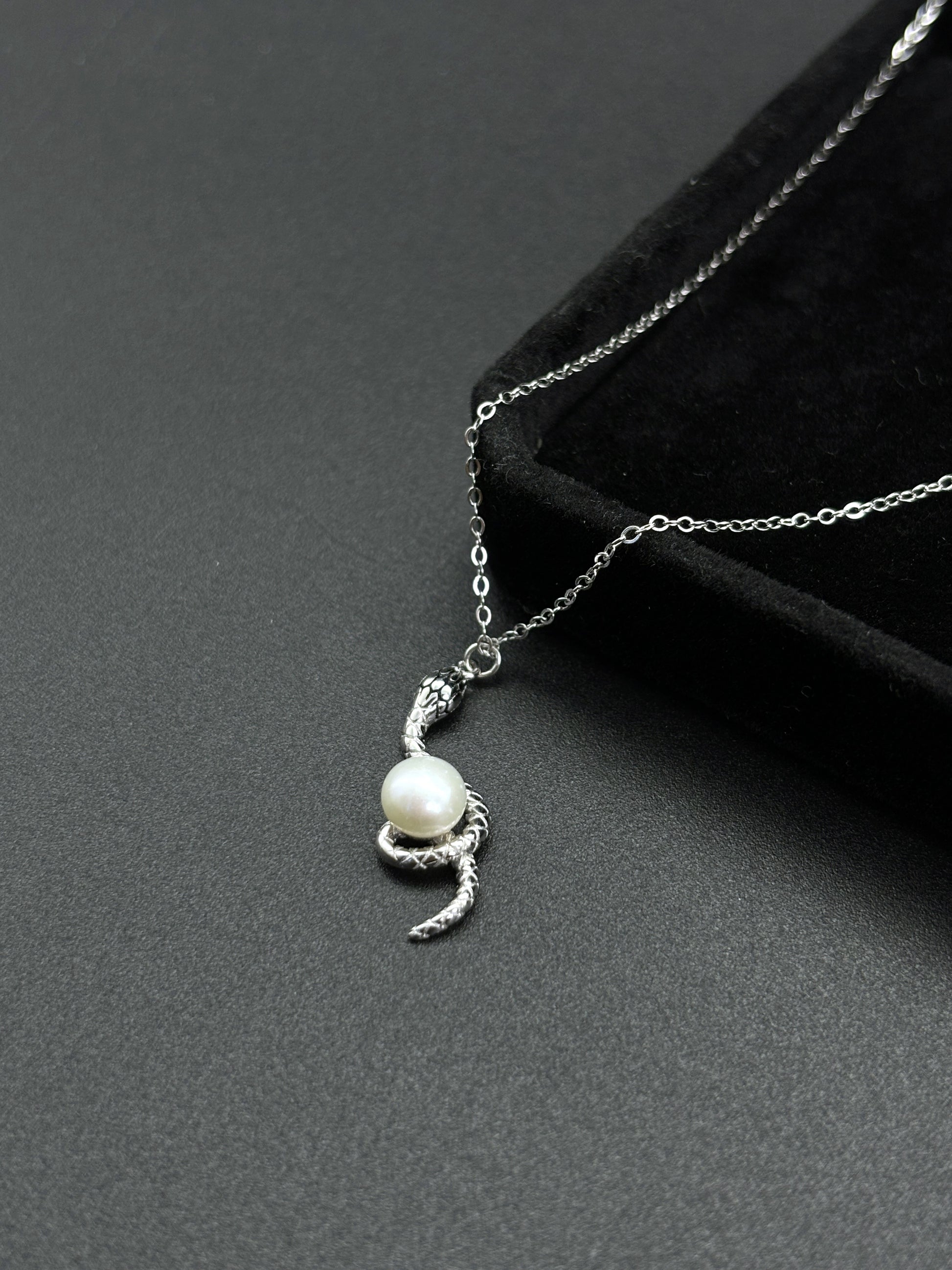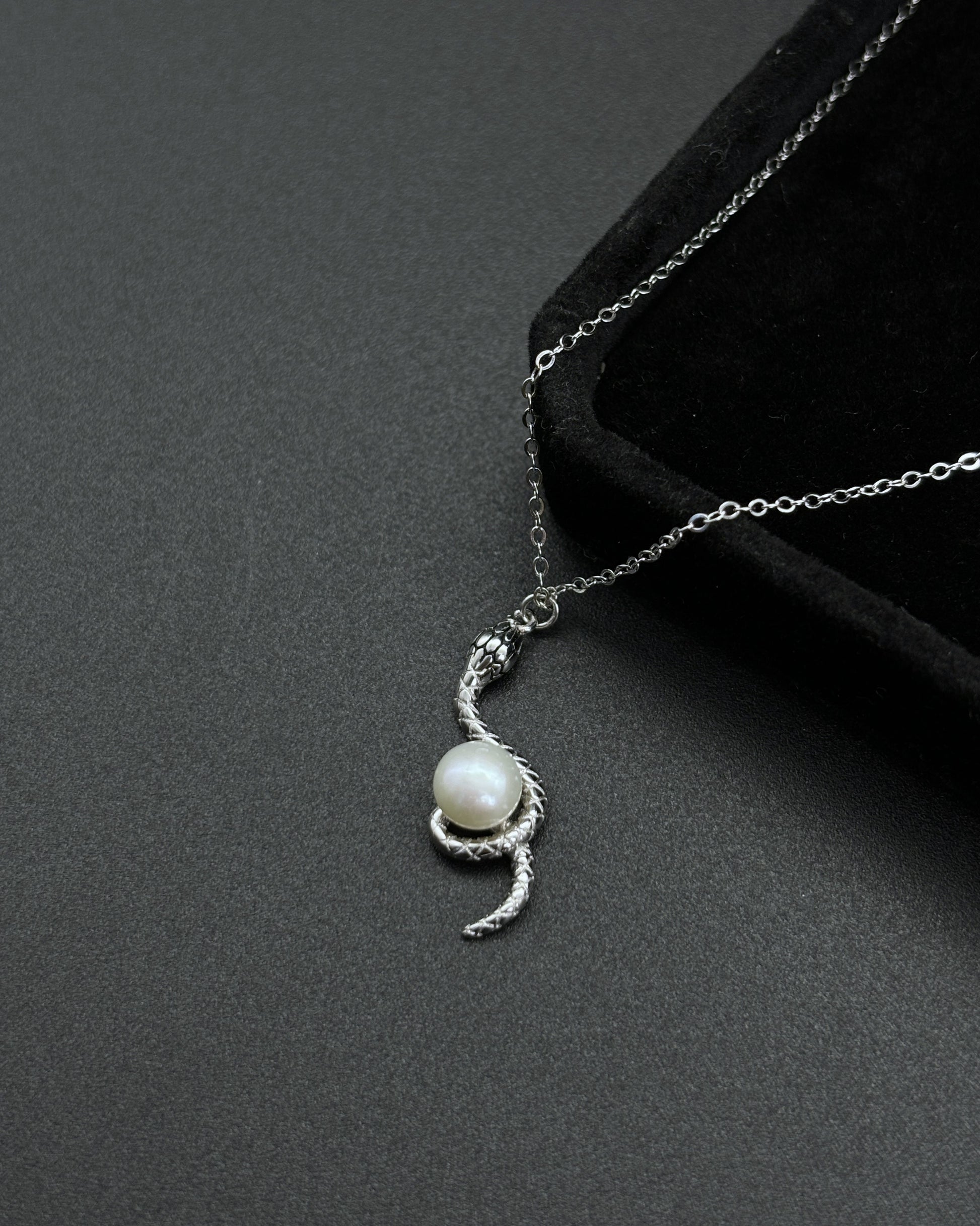 Premium Vintage Serpentine Design Clavicle Chain Pearl Pendant