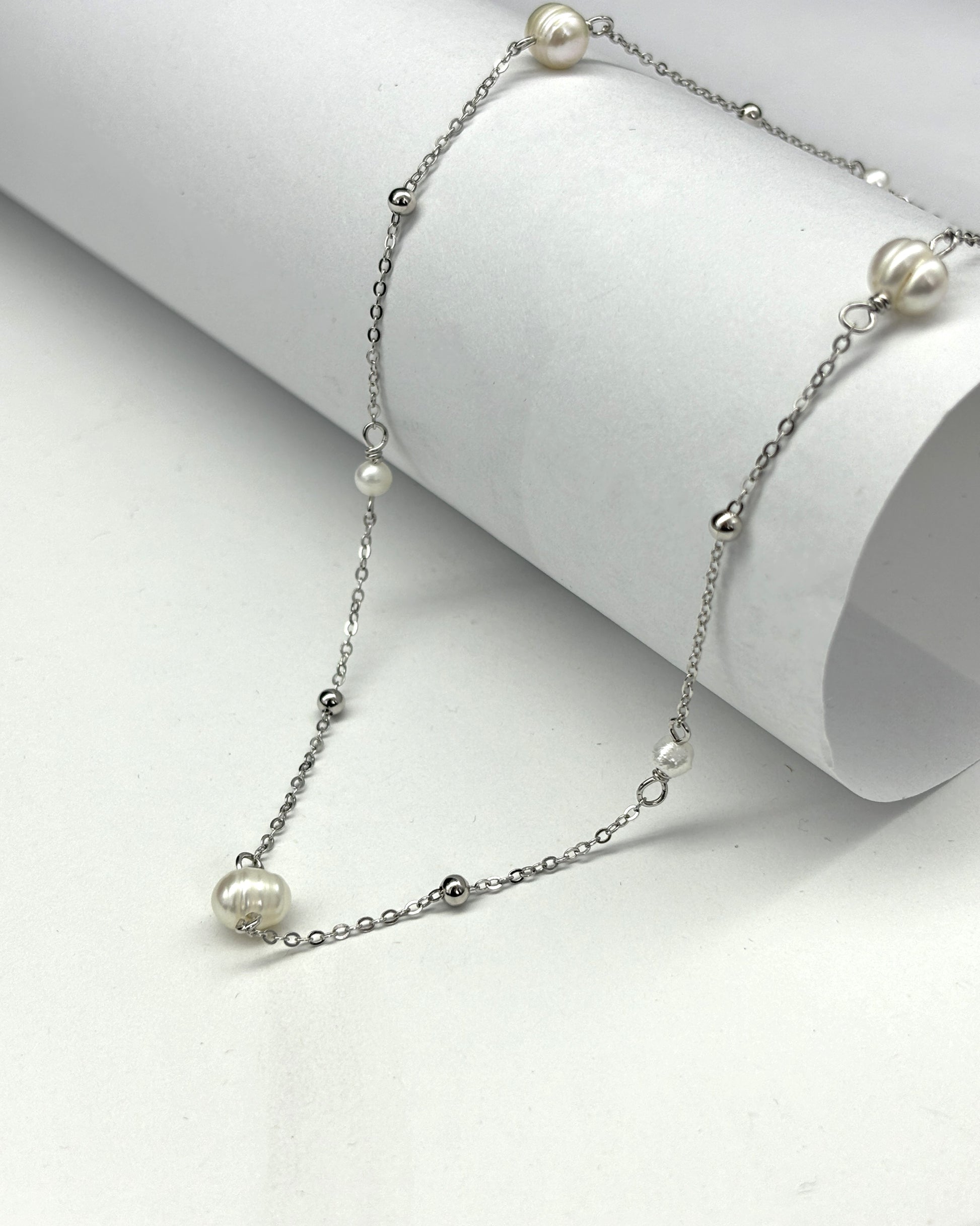 Sterling Silver Natural Freshwater Pearl Light Luxury Gypsy Necklace