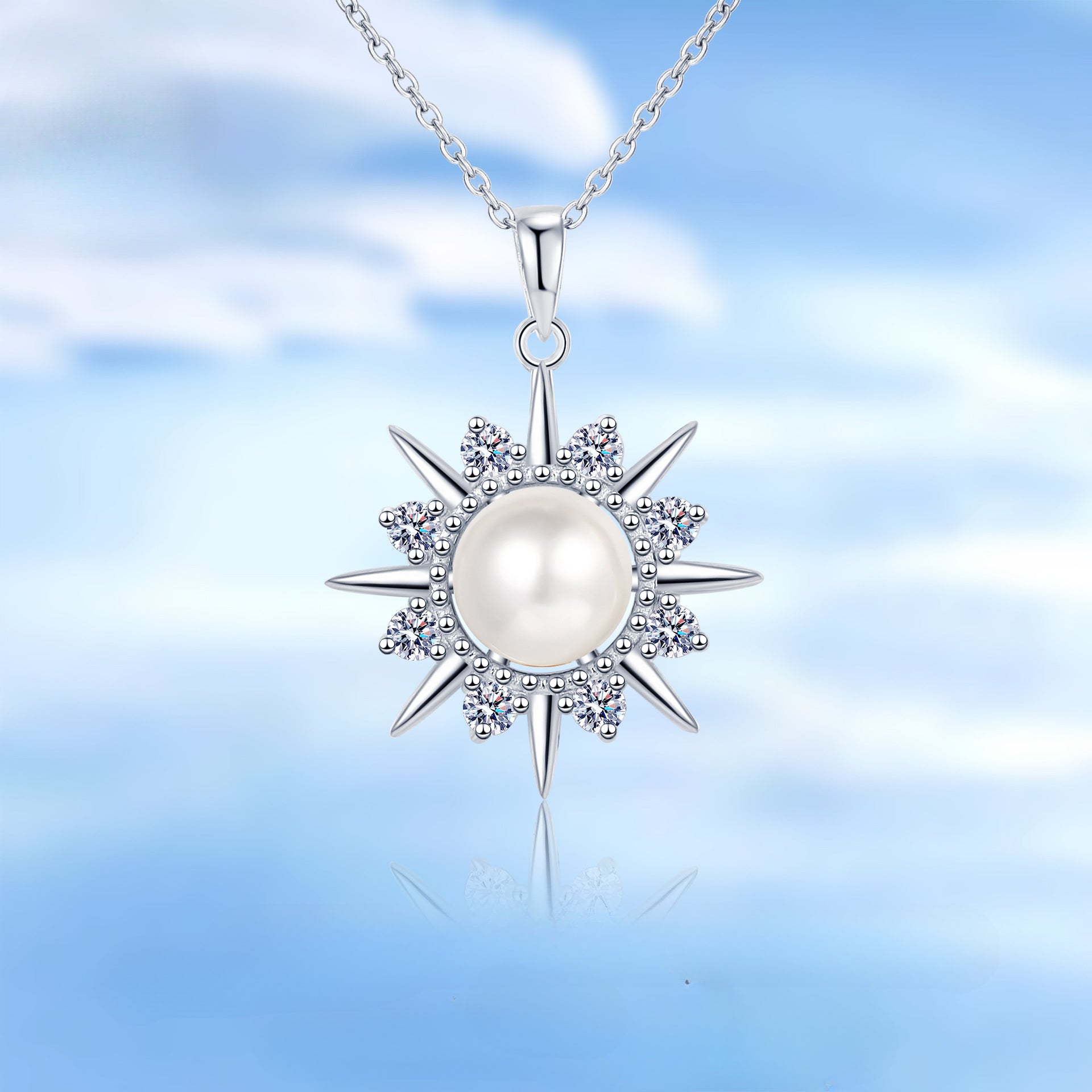 Sterling Silver Natural Pearl Sunflower Clavicle Chain