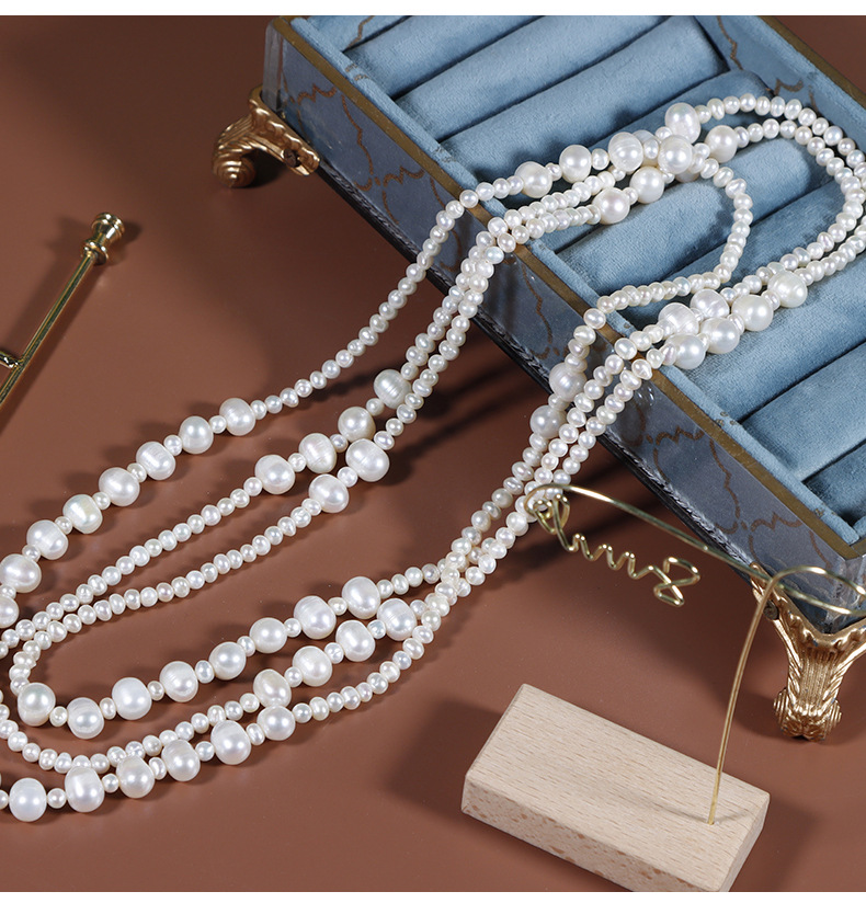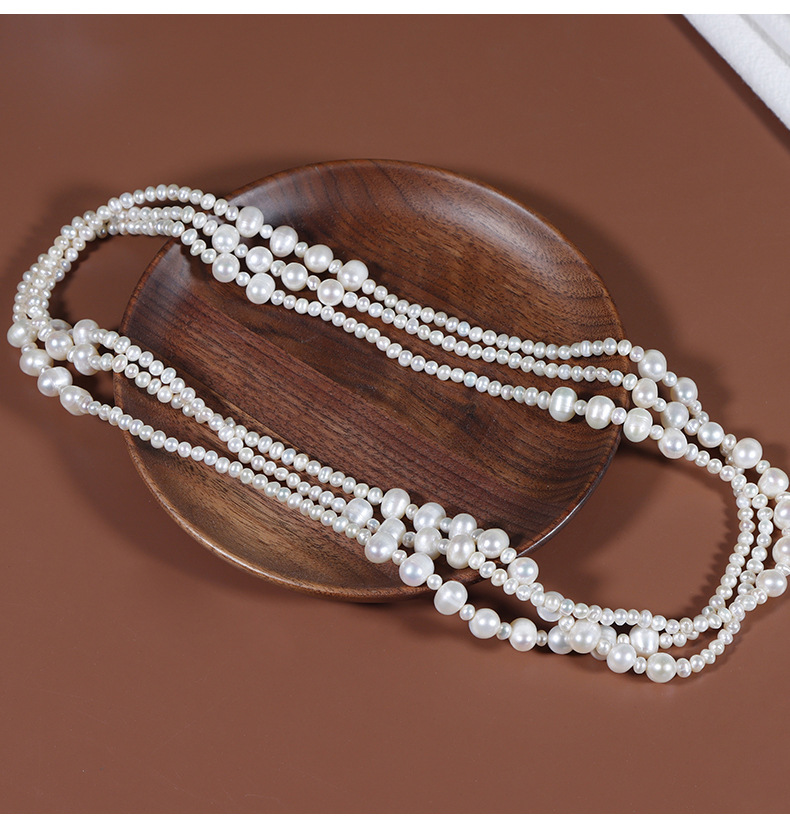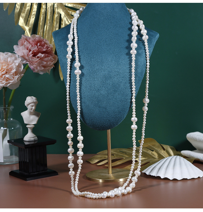 Threaded natural freshwater pearl sweater chain