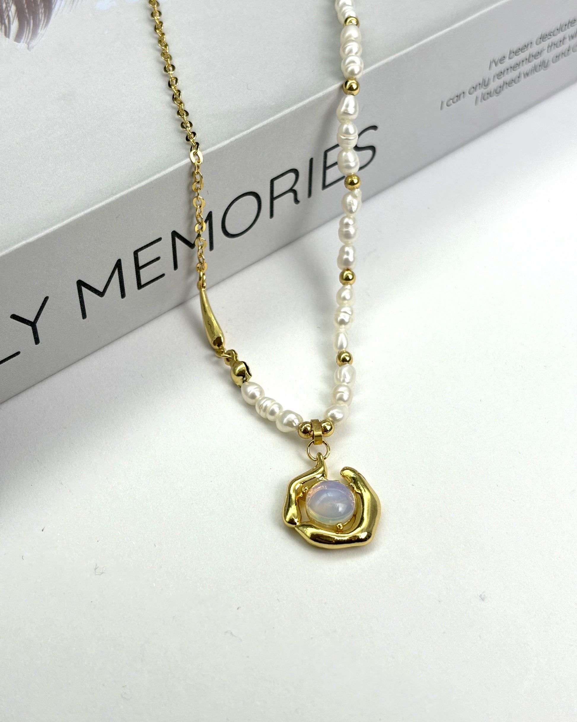 Vintage Moonstone Natural Pearl Necklace
